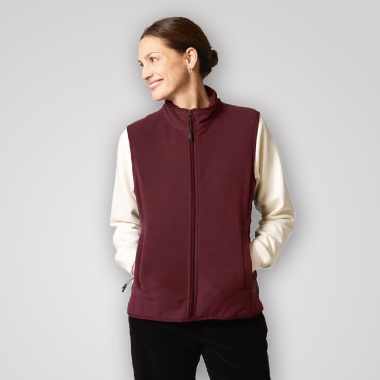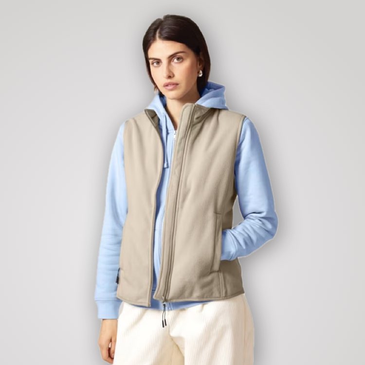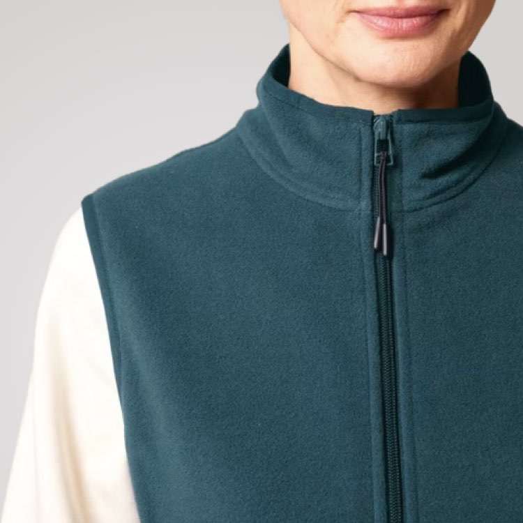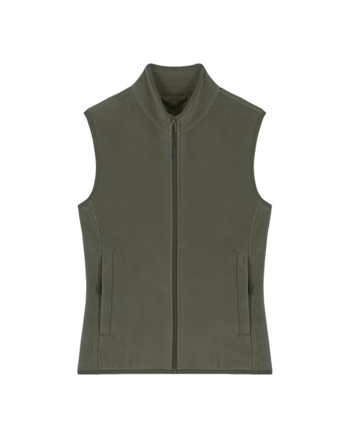 Product form Fleece vest for women €24,50 per item(Excl. VAT) 3 weeks lead time Women's fleece vest, Size: XS - XXL, Weight: 300 g/m² French Navy Stargazer Anthracite Mindful Blue Burgundy Khaki Desert Dust Black Color Mindful Blue French Navy Stargazer Anthracite Mindful Blue Burgundy Khaki Desert Dust Black Select branding Front Embroidery (1 colour) (+6.00€) Front DTF printing (full colour) (+6.00€) Back DTF printing (full colour) (+6.00€) Quantity (min. 10) Add to quote Product specifications Description: - Sleeveless - Elastic binding at neck edge, armhole and hem - Inside back neck grosgrain loop - Nylon coil zipper with metal puller and cord ending - Brushed fabric with Anti piling finish on inside and outside - Front side welt pockets with zip opening - Inside back neck tape in recycled polyester Composition: Shell: Polar Fleece, 100% Polyester - Recycled, Brushed Care Instructions: Wash similar colours together. No ironing. Close all snaps before washing. Line dry. Bulk Discounts Order Quantity Unit Price (€) 100-499 21.95 500-999 19.35 1000-2000 18.45 Sustainability Certifications GOTS