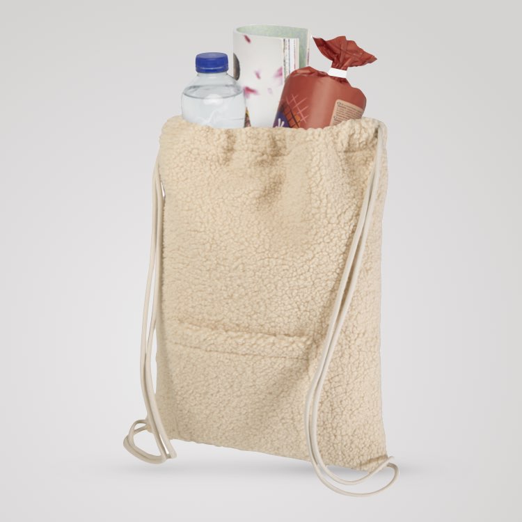 Product form Sherpa drawstring backpack GRS recycled €13,80 per item(Excl. VAT) 3 weeks lead time Bear GRS recycled sherpa drawstring backpack 9L, Material recycled polyester, Size 34x44x1,5 cm Natural Black Color Natural Natural Black Select branding Front Embroidery (1 colour) (+6.00€) Top Embroidery (1 colour) (+6.00€) Quantity (min. 50) Add to quote Product specifications The Bear sherpa drawstring backpack is made from GRS certified recycled polyester. It features a spacious main compartment, a convenient front pocket for quick-access items, and a top handle for easy carrying. Volume capacity: 9 litres. GRS certified recycled polyester. Bulk Discounts Order Quantity Unit Price (€) 100-249 12.00 250-499 11.15 500-1000 9.90 Sustainability Certifications Global Recycled Standard