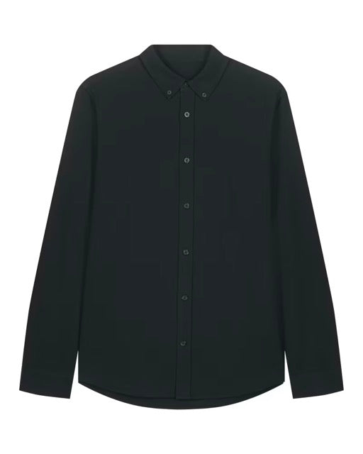 - Button down collar with single needle topstiches