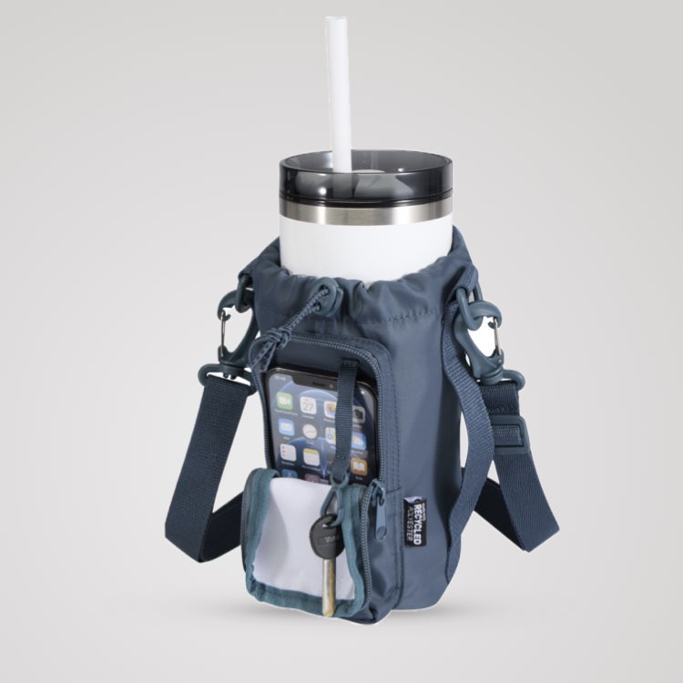 Product form Trip Aware™ recycled travel bottle bag €13,50 per item(Excl. VAT) 3 weeks lead time Trip Aware™ recycled travel bottle bag 2L, Material Recycled Polyester 100%, Weight 123.00g, Product Size (cm) L 10 H 21... Off white Black Hale Blue Color Black Off white Black Hale Blue Select branding Front DTF printing (full colour) (+4.50€) Quantity (min. 50) Add to quote Product specifications The Trip Aware™ recycled travel bottle bag is a practical and lightweight solution for staying hydrated on the move. Made from 290D twill polyester with a knitted backing and lined with RPET 210D/PU, it offers both durability and considered design. The main compartment features a drawstring closure and fits both large bottles with handles and smaller bottles, with a rear opening for easy access. A front pocket holds essentials such as a phone, and includes an internal slide pocket and a ribbon for securing keys. An adjustable strap and side handle offer flexible carrying options. Each bag also comes with an Aware™ tracer. This innovative feature allows users to trace the origins and journey of their item through a QR code, enhancing transparency in the supply chain and fostering a stronger connection between the product and its production process. Volume capacity: 2 litres. Recycled Polyester. Bulk Discounts Order Quantity Unit Price (€) 100-249 13.00 250-499 10.80 500-1000 9.50 Sustainability Certifications This product is not sustainably certified.