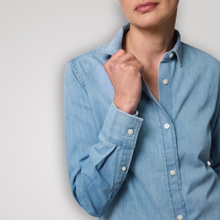 Product form Women's denim shirt €36,00 per item(Excl. VAT) 3 weeks lead time Women's denim medium fit shirt, Size: XS - 3XL, Weight: 235 g/m² Mid Wash Light Wash Color Mid Wash Mid Wash Light Wash Select branding Front Embroidery (1 colour) (+6.00€) Front DTF printing (full colour) (+6.00€) Back DTF printing (full colour) (+6.00€) Quantity (min. 10) Add to quote Product specifications Description - Button down collar with single needle topstiches - Collar stand - Front placket single needle topstitches on each side - Forwarded shoulder - Back yoke - Inside yoke in self fabric - Set-in sleeves - Sleeve placket with one button - Cuff with two buttons - Rounded cuff corners - Double pleats at cuff seam - Faded look on all seams due to garment washing - Indigo yarn dyed product, each garment may vary in appearance, colour may bleed, follow our care label - Read carefully print recommendations Composition: Shell: Woven denim, 100% Cotton - Organic Ring Spun Combed, Garment washed Care Instructions: Wash similar colours together, no ironing on print, wash and iron inside out. Bulk Discounts Order Quantity Unit Price (€) 100-499 32.20 500-999 28.45 1000-2000 27.10 Sustainability Certifications GOTS